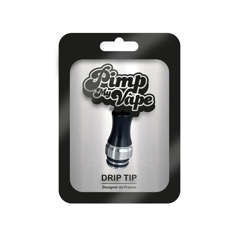 Drip-Tip 510 Pimp My Vape #0011 fabriqué en résine noir et acier inoxydable.