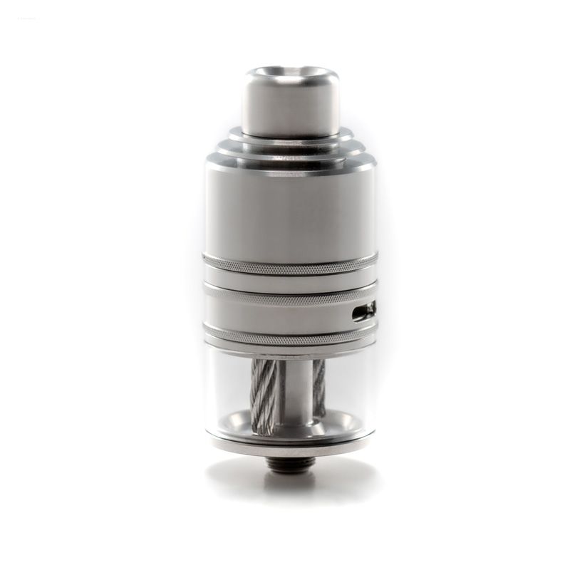 Grâce à son design en forme d'ailettes, le refroidissement de la chambre d'atomisation est assuré. Le tank en verre d'une contenance de 4 ml dispose de deux câbles en inox permettant ainsi au e-liquide d'assurer la capillarité jusqu'à la résistance située en haut (top coil).