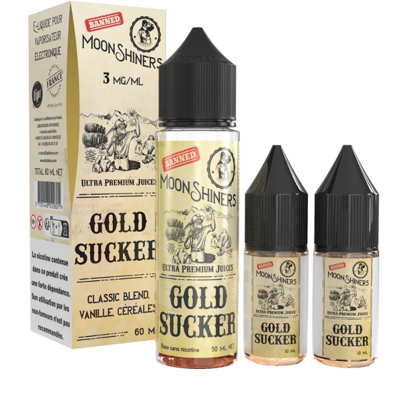 - 50 ml d'e-liquide sans nicotine + 1 Gold Sucker 10ml 18mg