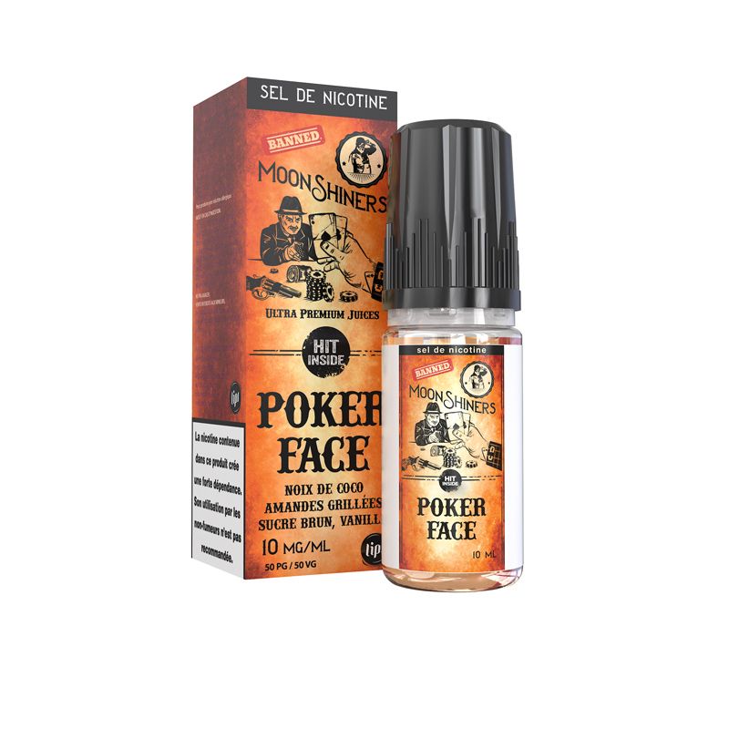 L'e-liquide Moonshiners Poker Face dévoile son jeu à travers plusieurs arômes. C'est tout d'abord un mélange d'amandes grillées et de noix de coco qui se dévoilent. Ce mix est suivi de près par une saveur de sucre brun ainsi que celle d'une pointe de vanille. Maintenant que l'e-liquide Poker Face a dévoilé ses cartes, allez-vous relever le défi avec votre cigarette électronique ?