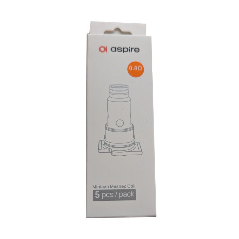 Pack de 5 résistances en Mesh pour la cigarette électronique Aspire Minican. Disponible en 0,8 Ohm et compatible Minican 2, 3 et 3 Pro.